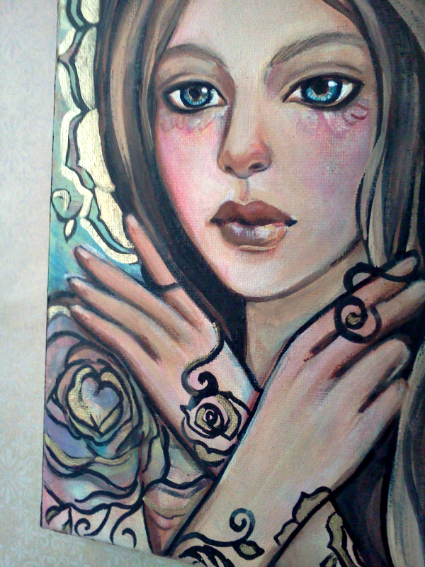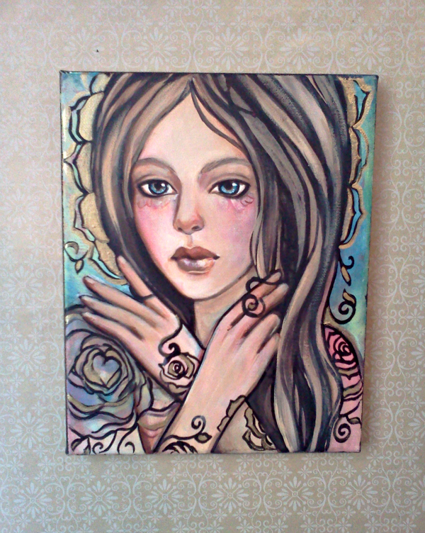 You will be commissioning an original mixed media painting on canvas in an 8" x 10" size very similar to this piece.
