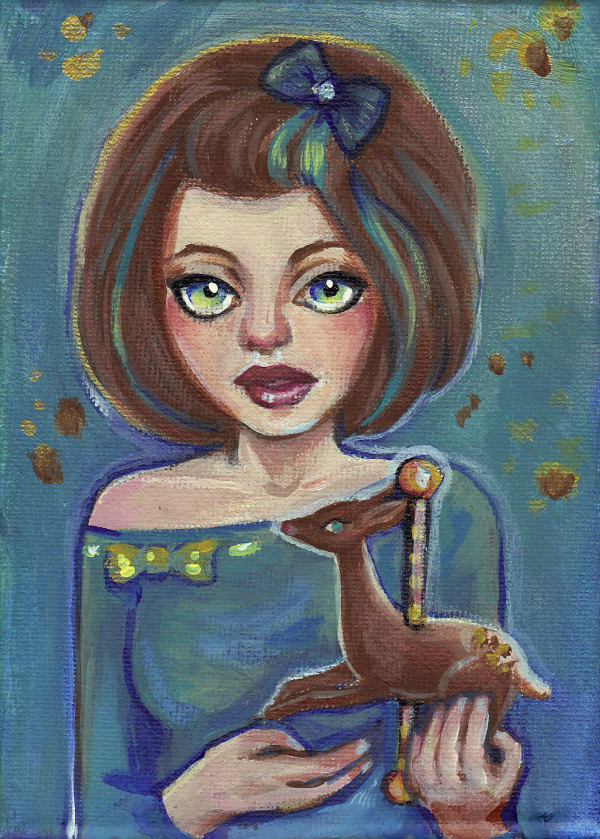 Fawn is inspired by carousels, deer, Blythe dolls, and the lowbrow / pop surrealist art movement.